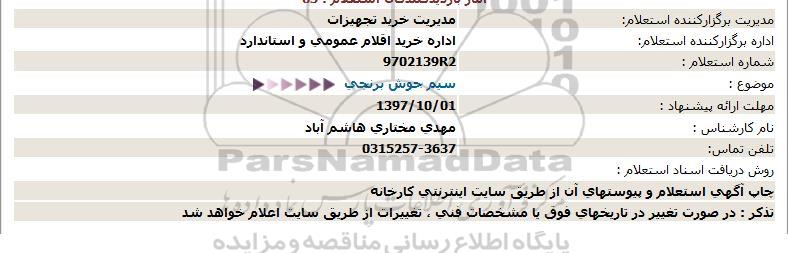 اداره برگزارکننده استعلام:  اداره خرید اقلام عمومی و استاندارد