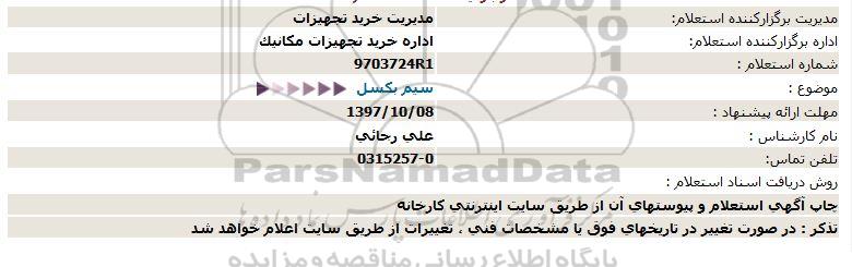 اداره برگزارکننده استعلام:  اداره خرید تجهیزات مکانیک