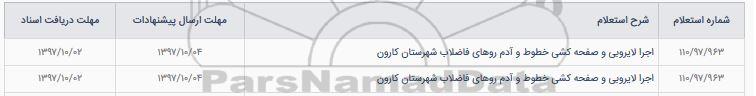 | 110/97/963 | اجرای لایروبی و صفحه کشی خطوط و آدم های فاضلاب شهرستان کارون |