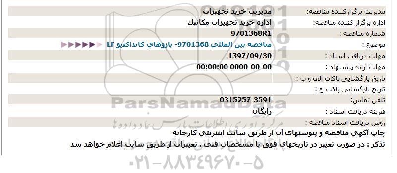 موضوع : بازوهای کانداکتیو LF مناقصه بین المللی 9701368