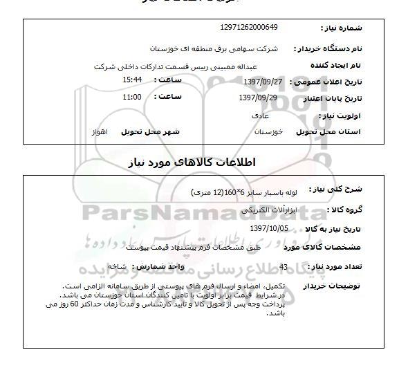 نام دستگاه خریدار شرکت سهامی برق منطقه ای خوزستان