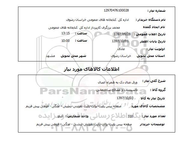 نام دستگاه خریدار : اداره کل کتابخانه های عمومی خراسان رضوی