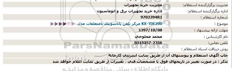 استعلام مرکز تلفن پاناسونیک با متعلقات مدل KX-TDE200 , استعلام, استعلام مرکز تلفن پاناسونیک با متعلقات مدل KX-TDE200