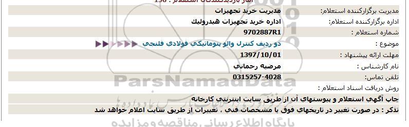 اداره برگزارکننده استعلام: اداره خرید تجهیزات هیدرولیک