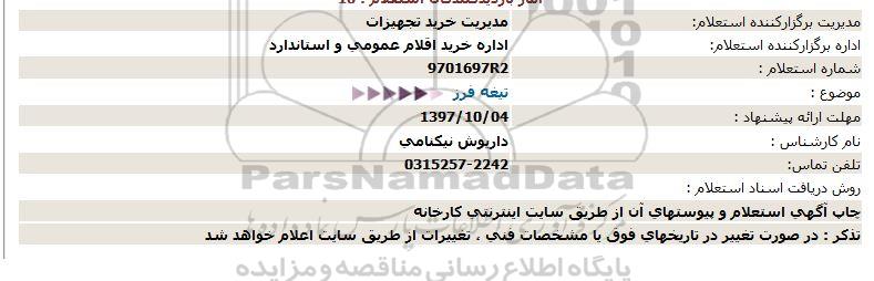 اداره برگزار کننده استعلام: اداره خرید اقلام عمومی و استاندارد