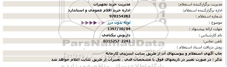 استعلام لوله بدون درز , استعلام , استعلام لوله بدون درز