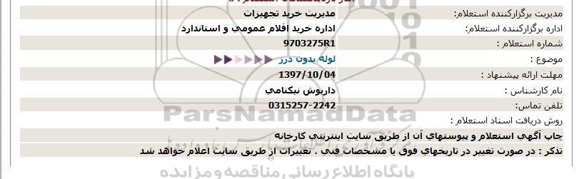 استعلام لوله بدون درز , استعلام, استعلام لوله بدون درز