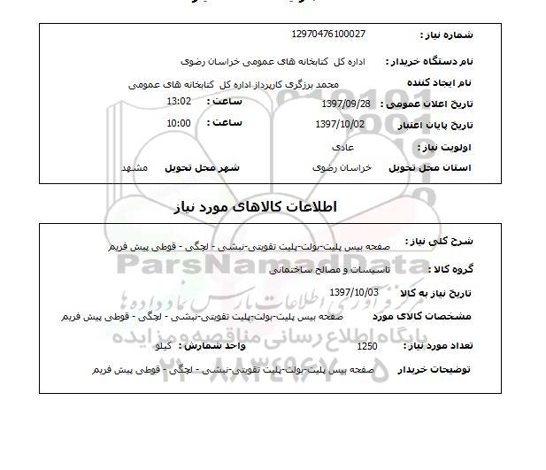 نام دستگاه خریدار: اداره کل کتابخانه های عمومی خراسان رضوی