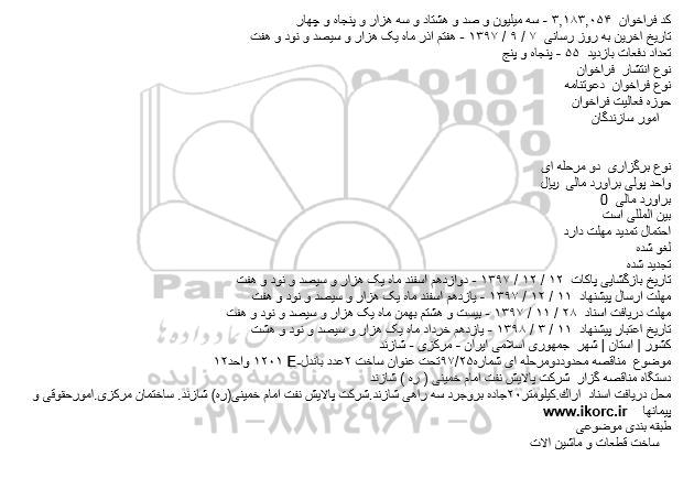 موضوع  مناقصه محدود دومرحله ای شماره۲۵.۹۷تحت عنوان ساخت ۲عدد باندل E-۱۲۰۱ واحد۱۲