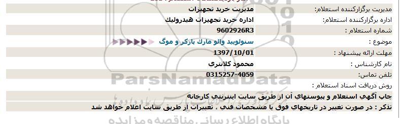 اداره برگزارکننده استعلام: اداره خرید تجهیزات هیدرولیک