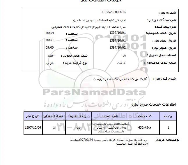 شرح کلی نیاز : گاز کشی کتابخانه کرخنگان شهر مروست