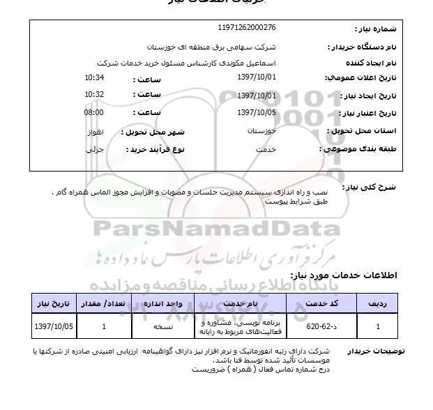 نام دستگاه خریدار: شرکت سهامی برق منطقه ای خوزستان