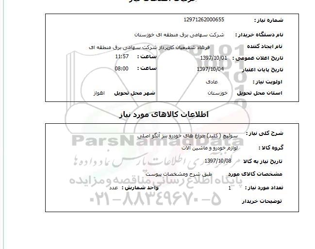 نام دستگاه خریدار: شرکت سهامی برق منطقه ای خوزستان