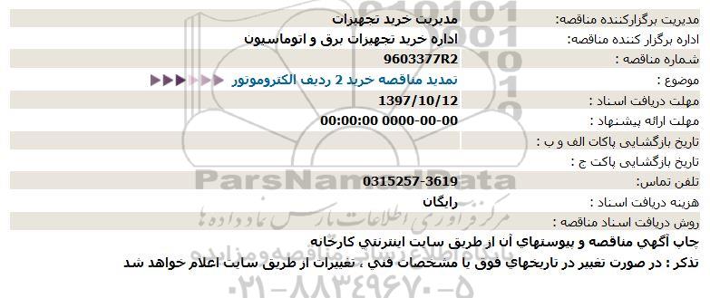 موضوع : تمدید مناقصه خرید 2 ردیف الکتروموتور