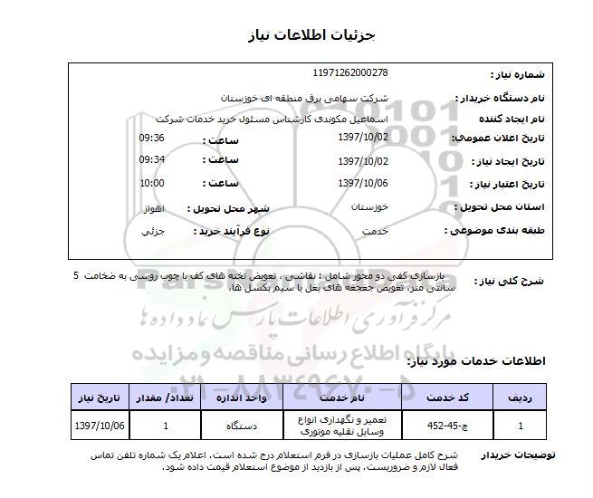 نام دستگاه خریدار : شرکت سهامی برق منطقه ای خوزستان
