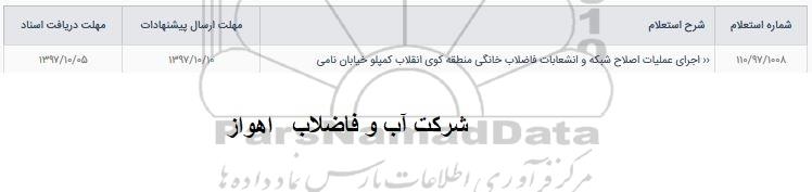 شرح استعلام: اجرای عملیات اصلاح شبکه و انشعابات فاضلاب خانگی منطقه کوی انقلاب کمپلو خیابان نامی
