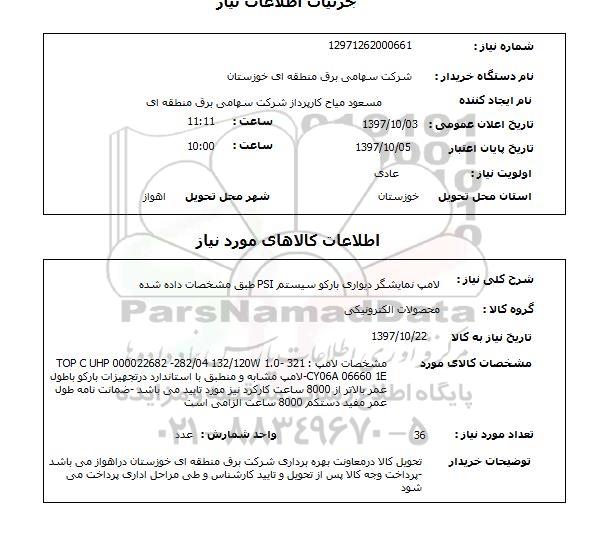 نام دستگاه خریدار: شرکت سهامی برق منطقه ای خوزستان