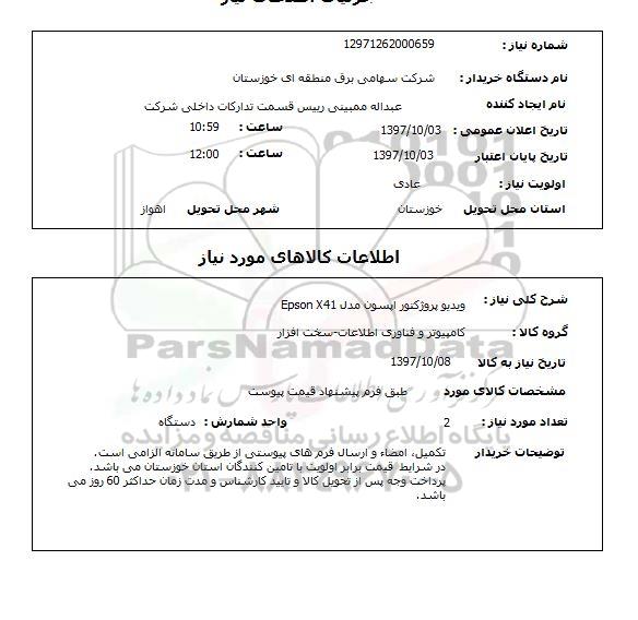 نام دستگاه خریدار: شرکت سهامی برق منطقه ای خوزستان
