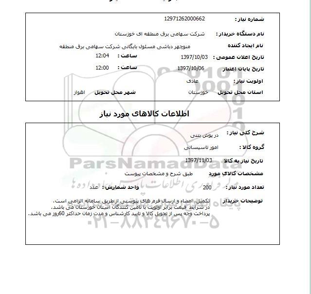 نام دستگاه خریدار شرکت سهامی برق منطقه ای خوزستان
