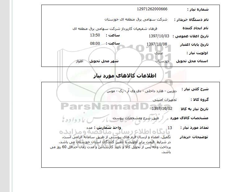 نام دستگاه خریدار شرکت سهامی برق منطقه ای خوزستان