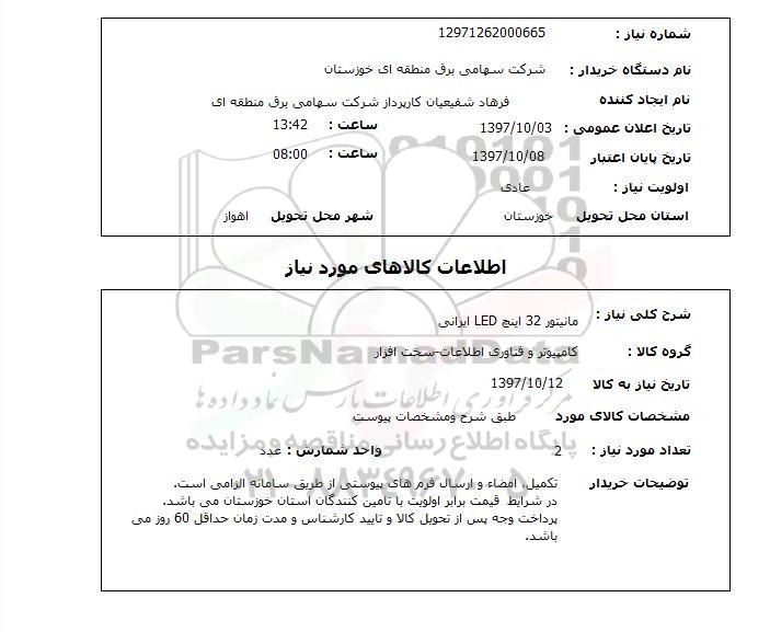 نام دستگاه خریدار شرکت سهامی برق منطقه ای خوزستان