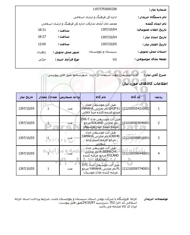 استعلام آلات موسیقی جهت استفاده در ادارات ..., استعلام, استعلام آلات موسیقی جهت استفاده در ادارات ...
