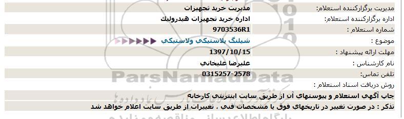 اداره برگزارکننده استعلام: اداره خرید تجهیزات هیدرولیک