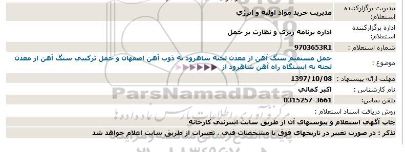 موضوع : حمل مستقیم سنگ آهن از معدن لجنه شاهرود به ذوب آهن اصفهان و حمل ترکیبی سنگ آهن از معدن لجنه به ایستگاه راه آهن شاهرود