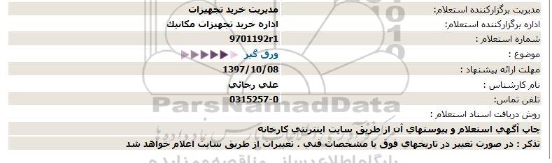 اداره برگزارکننده استعلام: اداره خرید تجهیزات مکانیک