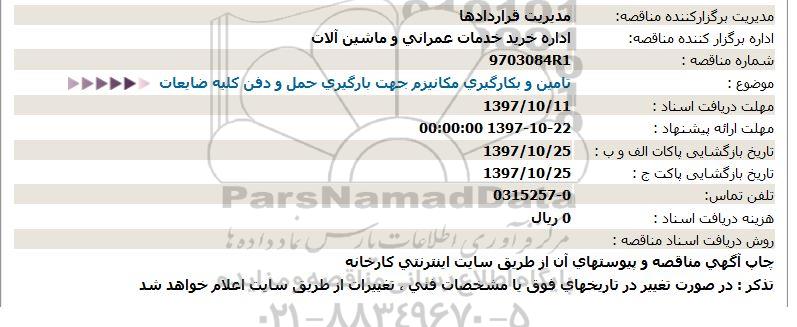 موضوع : تامین و بکارگیری مکانیزم جهت بارگیری حمل و دفن کلیه ضایعات
