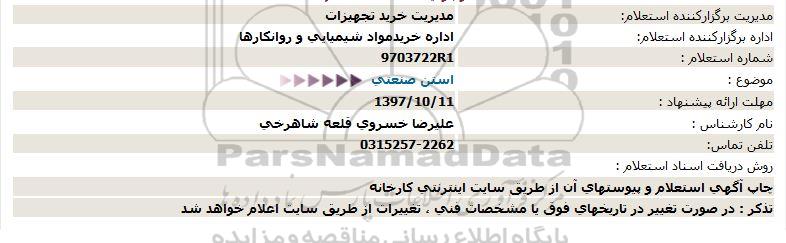 اداره برگزارکننده استعلام: اداره خرید مواد شیمیایی و روانکارها