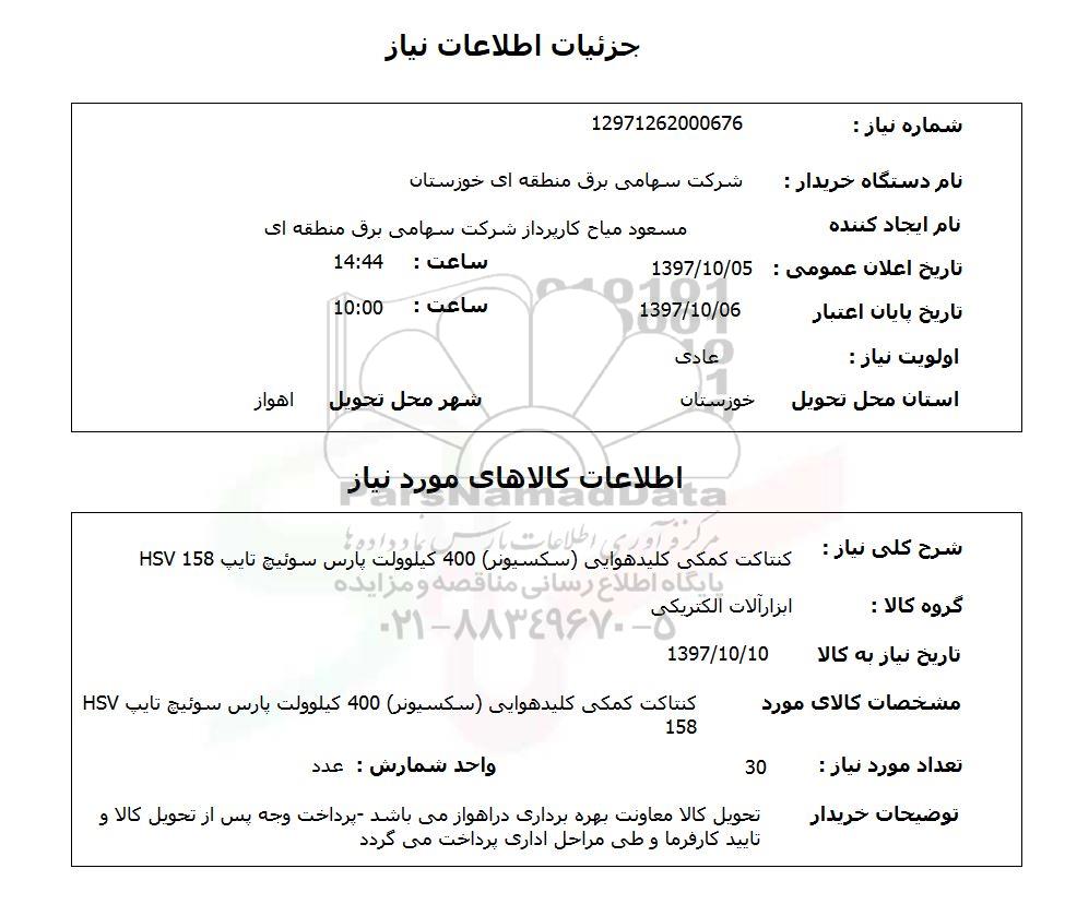 نام دستگاه خریدار:شرکت سهامی برق منطقه ای خوزستان
