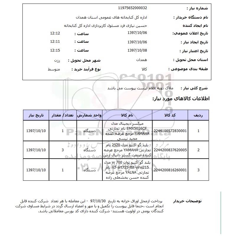 نام دستگاه خریدار: اداره کل کتابخانه های عمومی استان همدان