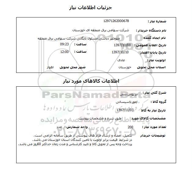 نام دستگاه خریدار: شرکت سهامی برق منطقه ای خوزستان