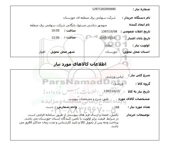 نام دستگاه خریدار شرکت سهامی برق منطقه ای خوزستان