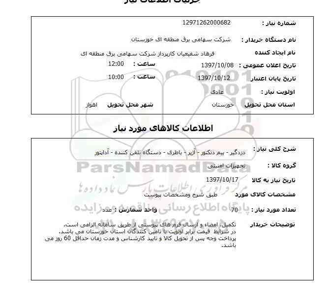 نام دستگاه خریدار: شرکت سهامی برق منطقه ای خوزستان