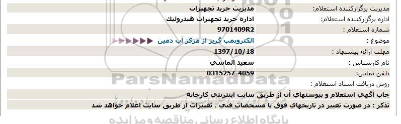 استعلام الکتروپمپ گریز از مرکز آب , استعلام استعلام الکتروپمپ گریز از مرکز آب
