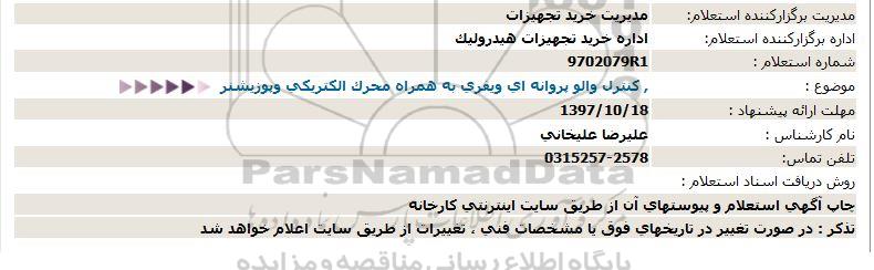 اداره برگزارکننده استعلام: اداره خرید تجهیزات هیدرولیک