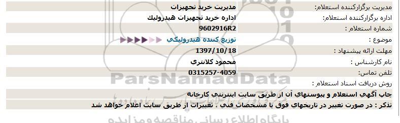 استعلام توزیع کننده هیدرولیکی , استعلام ,استعلام توزیع کننده هیدرولیکی