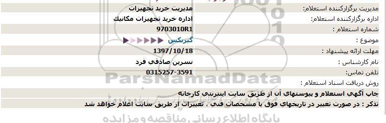 اداره برگزارکننده استعلام: اداره خرید تجهیزات مکانیک