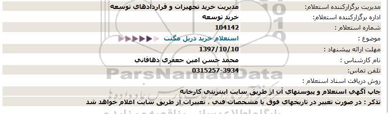 استعلام بها و موضوع استعلام استعلام ,استعلام خرید دریل مگنت به اطلاع کلیه شرکتها و افراد متخصص واجد شرایط میرساند، آگهی گذار در نظر دارد از طریق استعلام بها، نسبت به انتخاب و دریافت پیشنهادات اقدام نماید. این استعلام با کد آگهی ثبت شده در سامانه خبرگزاری پارس نماد : 1444172 منتشر شده است. مشخصات استعلام : تاریخ شروع استعلام: 1397/10/09 آخرین مهلت ارسال پیشنهاد قیمت : 1397/10/10 و محل اجرای پروژه : استان اصفهان میباشد. استعلام قیمت مورد درخواست : استعلام ,استعلام خرید دریل مگنت با دستهبندیهای تخصصی و گروه های مرتبط : ابزار و یراق آلات, تجهیزات و ماشین آلات صنعتی, تجهیزات و ماشین آلات حفاری, استعلام اطلاع رسانی میگردد.