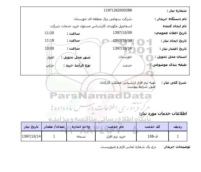 شرح کلی نیاز: استعلام تهیه نرم افزار ارزشیابی عملکرد کارکنان طبق شرایط پیوست