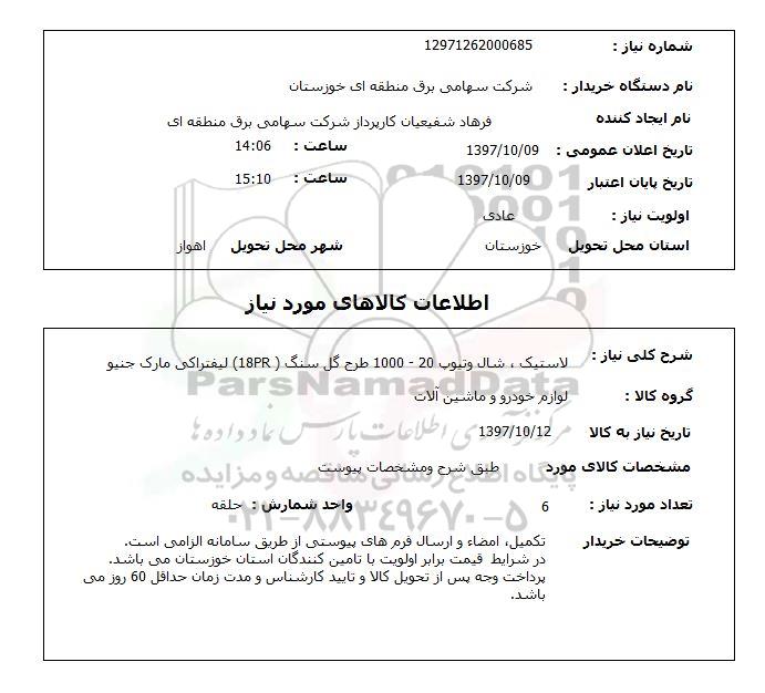 نام دستگاه خریدار: شرکت سهامی برق منطقه ای خوزستان