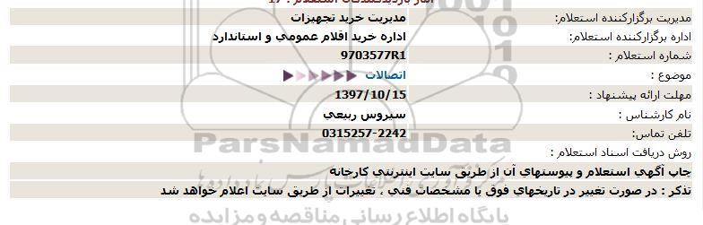 اداره برگزارکننده استعلام: اداره خرید اقلام عمومی و استاندارد