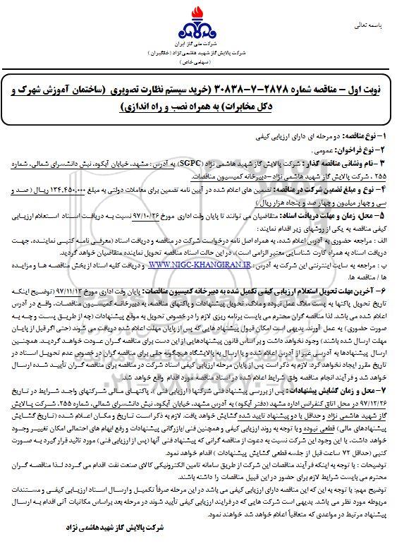 نوبت اول - مناقصه شماره 2878-7-30838 خرید سیستم نظارت تصویری (ساختمان آموزش شهرک و دکل مخابرات) به همراه نصب و راه اندازی