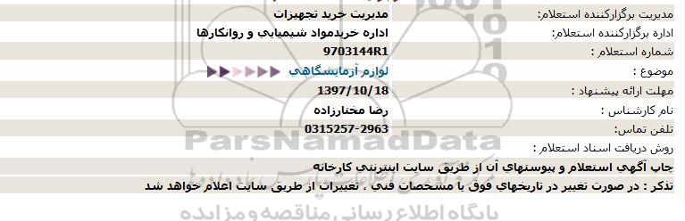 اداره برگزارکننده استعلام: اداره خریدمواد شیمیایی و روانکارها