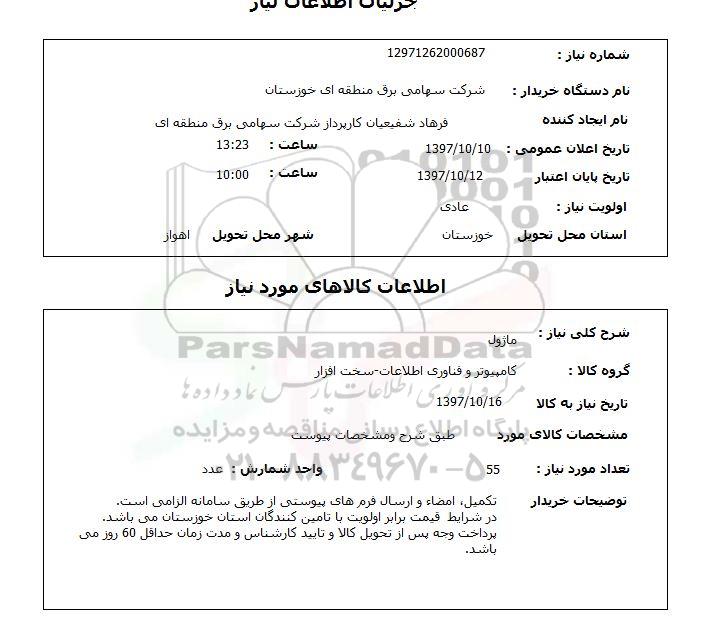شماره نیاز: 12971262000687