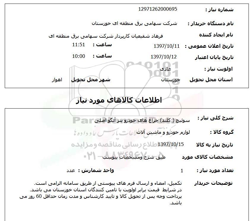 نام دستگاه خریدار: شرکت سهامی برق منطقه ای خوزستان