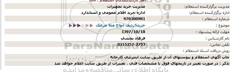اداره برگزارکننده استعلام:     اداره خرید اقلام عمومی و استاندارد