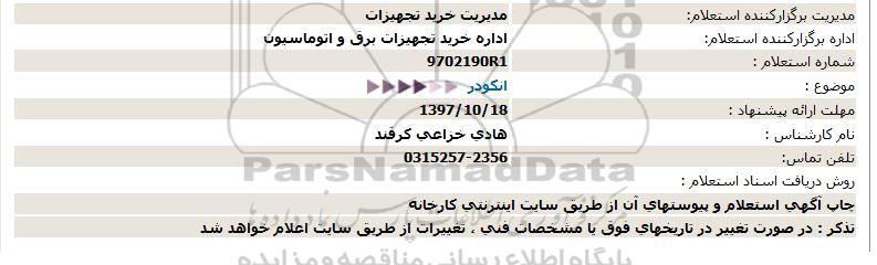 اداره برگزارکننده استعلام: اداره خرید تجهیزات برق و اتوماسیون